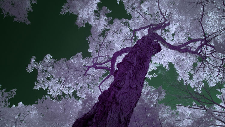 Leur méthodologie, développée depuis plusieurs années, s’ancre dans la mise à vue et dans la mise à l’écoute de phénomènes visuels et sonores souvent imperceptibles. Utilisant de l’outillage perfectionné, le duo arpente les forêts en donnant à voir et à entendre autrement. L’activité sonore du mouvement interne des arbres et du sol environnant est enregistrée à l’aide de capteurs spécifiques qui permettent une écoute intime des épaisseurs temporelles de la forêt. En plus d’expérimenter le son de ces écosystèmes, une caméra numérique à spectre complet est utilisée afin d’exposer ce qui se passe dans les profondeurs de la forêt, en étendant le regard au-delà du spectre visible à l’œil humain, proposant ainsi une plongée dans un univers à l’atmosphère surréelle. Évitant l’approche documentaire directe, les artistes ouvrent un espace d’attention sur la complexité et la dynamique à partir desquelles les forêts se révèlent de manière inattendue et sous différents angles.