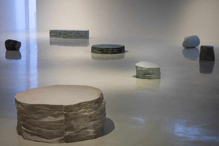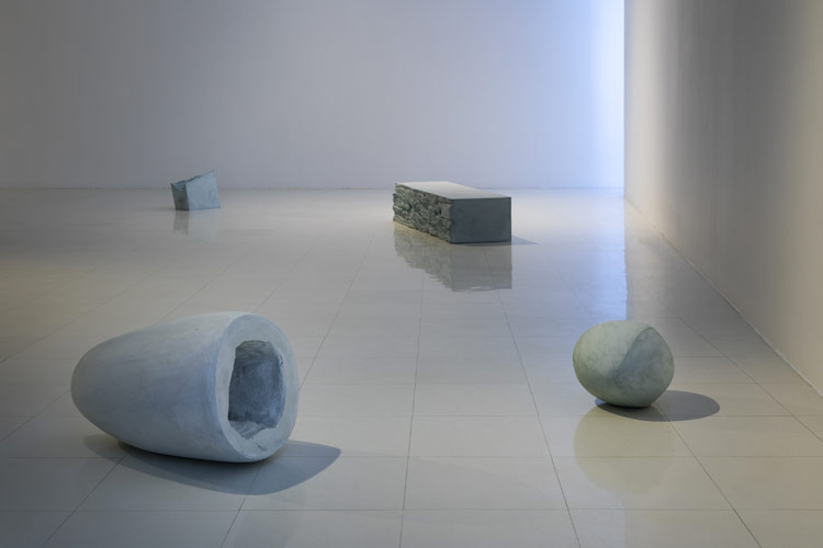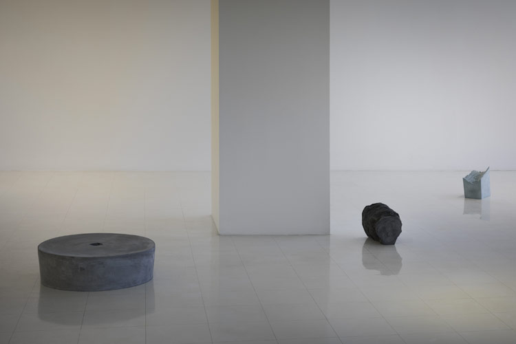 C’est dans ce contexte que nous présentons ce corpus d’œuvres récentes de Danielle Cormier. L’artiste explore depuis plusieurs années les techniques de moulage, tel un fil rouge au sein de sa démarche. Un travail tout à la fois minutieux et libre menant à une vaste recherche sur les possibles modes d’émergence de l’objet et de surgissement de la forme. Si les éléments sculpturaux se présentent eux-mêmes comme des éléments complexes et à découvrir, ils activent, dans leur dialogue avec l’espace, une syntaxe tout à la fois décisive et explicitement temporaire. L’artiste nous convient ainsi à habiter un de ses paysages et à réinventer nos déambulations dans l’espace transfiguré de la Galerie.