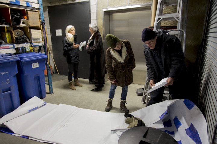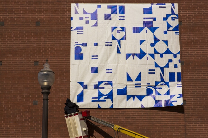 Conçu par l’artiste Nadia Myre en collaboration avec Karen Elaine Spencer, le projet intitulé Frozen Blue se présente comme une bannière déjouant les règles de l’affichage urbain. Inspirée d’une lecture de la pièce Frozen, présentée jusqu’au 29 mars au Théâtre de la Bordée, l’œuvre présente des fragments d’un poème caché, à déchiffrer. Nadia Myre évoque dans ce poème la métaphore hivernale si présente dans la pièce: