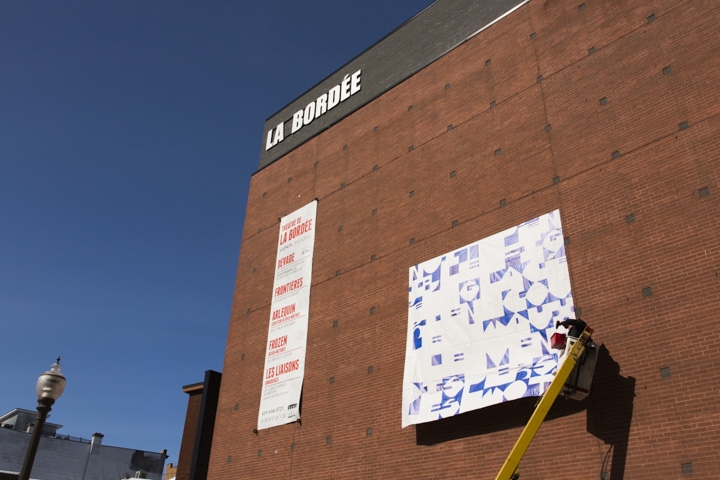 La Galerie des arts visuels de l’Université Laval est heureuse de présenter son tout premier projet d’art public. Cette bannière d’artiste, présentée avec la collaboration du Théâtre de la Bordée, sera visible jusqu’au 11 avril sur la façade arrière du théâtre, rue Notre-Dame-des-Anges.
